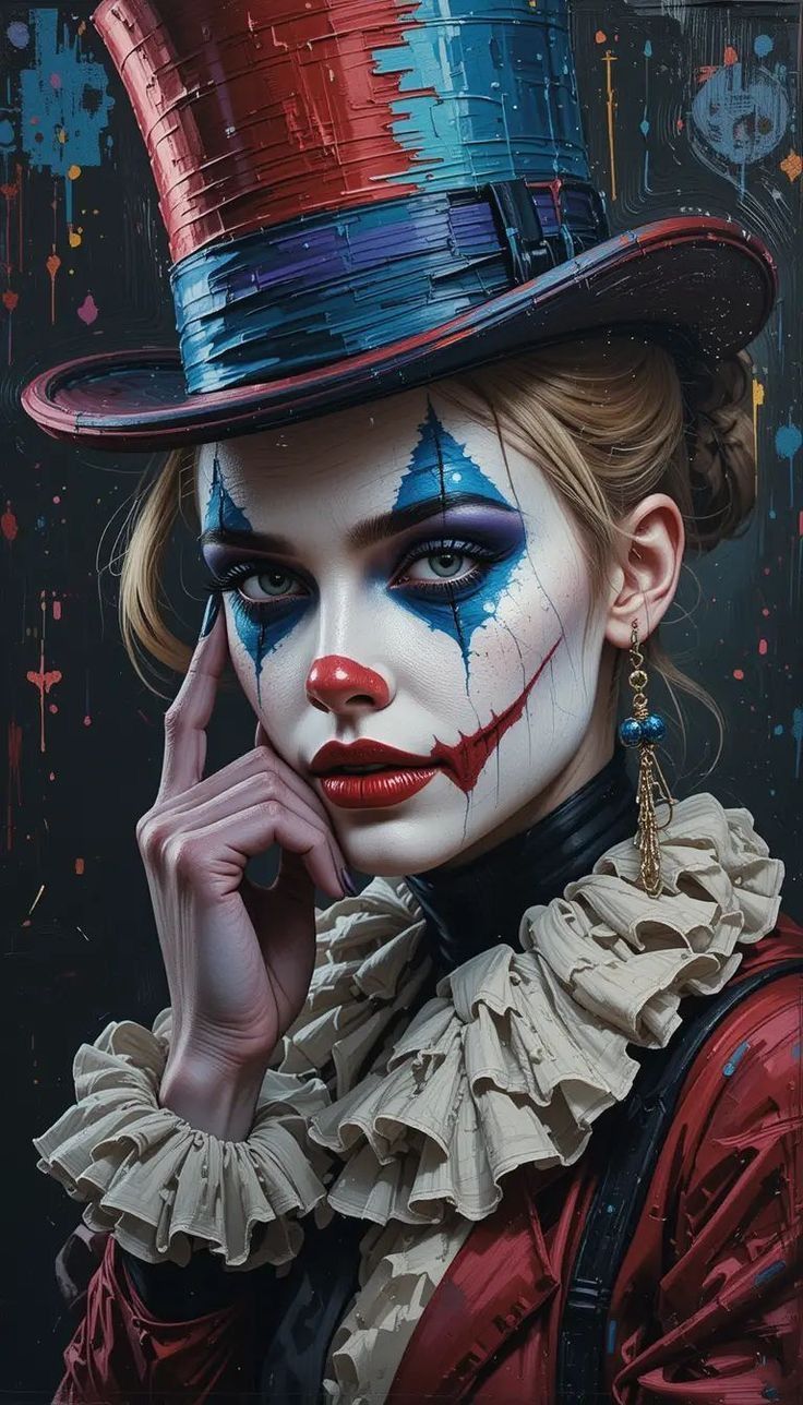 This category works because it mixes danger with polish. Makeup becomes narrative design. Contrast defines facial geometry. Fashion textures add sophistication. Slight asymmetry keeps the image unsettled. Controlled color prevents excess. The mood stays theatrical and self-aware.