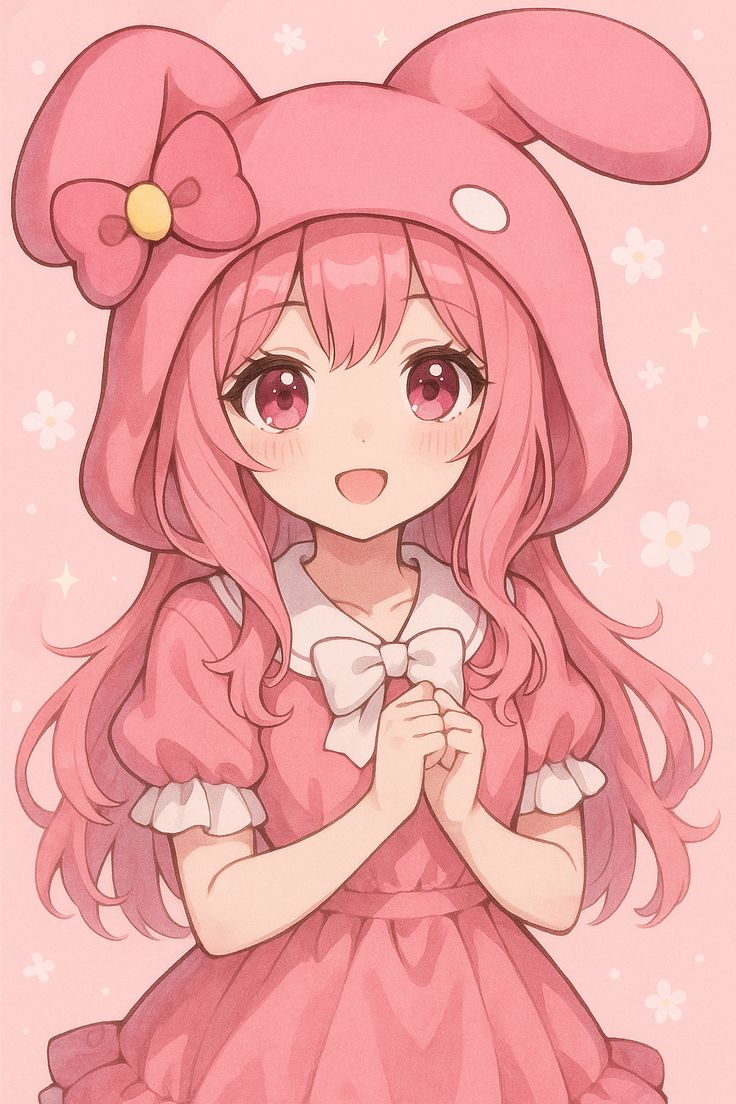 Sanrio Pfp My Melody visuals feature pink hoods, cream details, floral accents, and a warmer emotional atmosphere. The character reads instantly as soft and familiar. Edits often include lace, ribbons, or small hearts. The composition feels classic within Sanrio iconography and remains highly adaptable across aesthetic substyles.