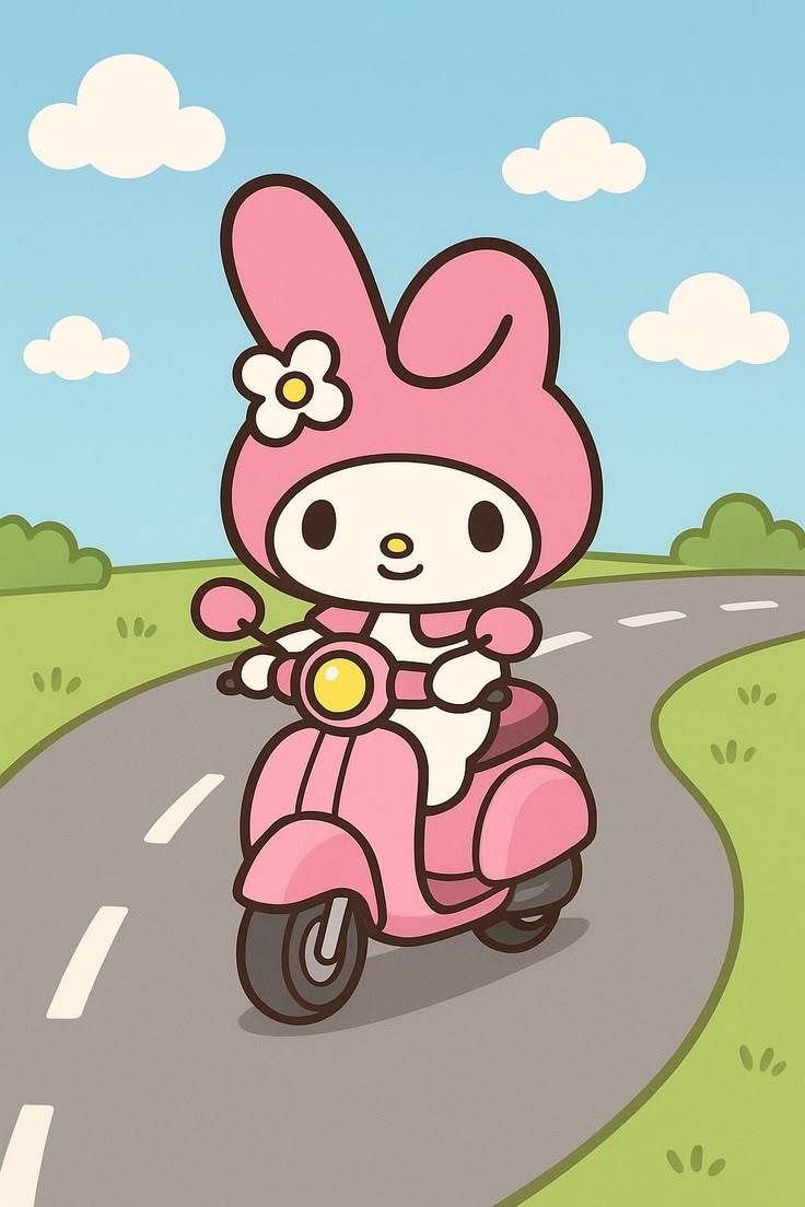 My Melody works through warmth and recognizability. Pink suggests comfort and affection. Cream tones lighten the frame. Rounded features preserve softness. Floral accents deepen the nostalgic feel. The image holds attention because it combines simple mascot design with stable emotional associations that remain readable at every crop size.